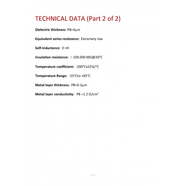 | Equivalent series resistance: | Extremely low |