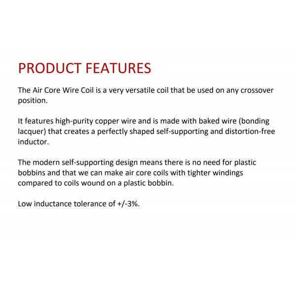 © It features high-purity copper wire and is made with baked wire (bonding lacquer) that creates a perfectly shaped self-supporting and distortion-free inductor.