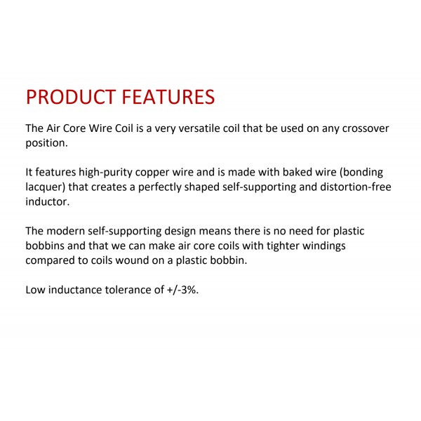 -The Air Core Wire Coil is a very versatile coil that be used on any crossover position.
