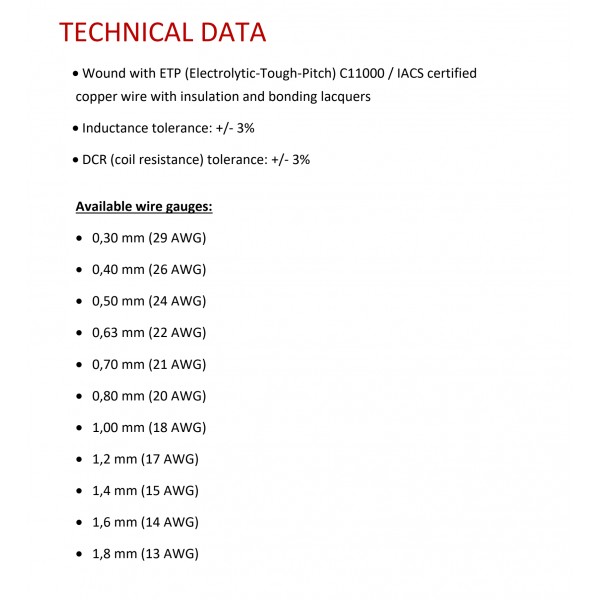 -It features high-purity copper wire and is made with baked wire (bonding lacquer) that creates a perfectly shaped self-supporting and distortion-free inductor.