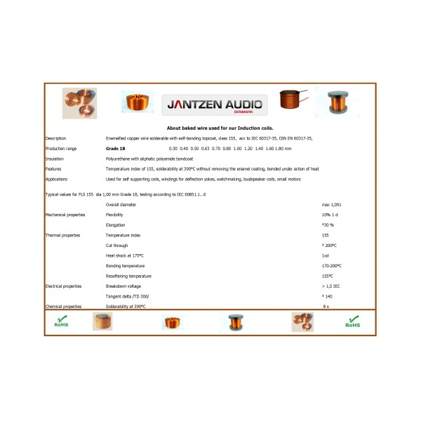 **ตัวเหนี่ยวนำแบบลวดแกนอากาศ Jantzen-Audio ผลิตจากลวดทองแดงบริสุทธิ์สูง 4N ในระหว่างกระบวนการผลิต ลวดจะถูกอบให้มีโครงสร้างที่แข็งแรงและมั่นคง ลวดทองแดงเคลือบฉนวน มีสารเคลือบผิวที่ยึดติดกับลวดข้างเคียงได้ดี ส่วนปลายสามารถบัดกรีได้ดี เป็นชิ้นส่วนที่มีราคาสมเหตุสมผลและได้รับความนิยมอย่างมากในหมู่ผู้สร้างที่มีงบประมาณจำกัด