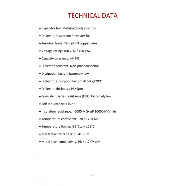 | Terminal leads: | Tinned 4N copper wire |