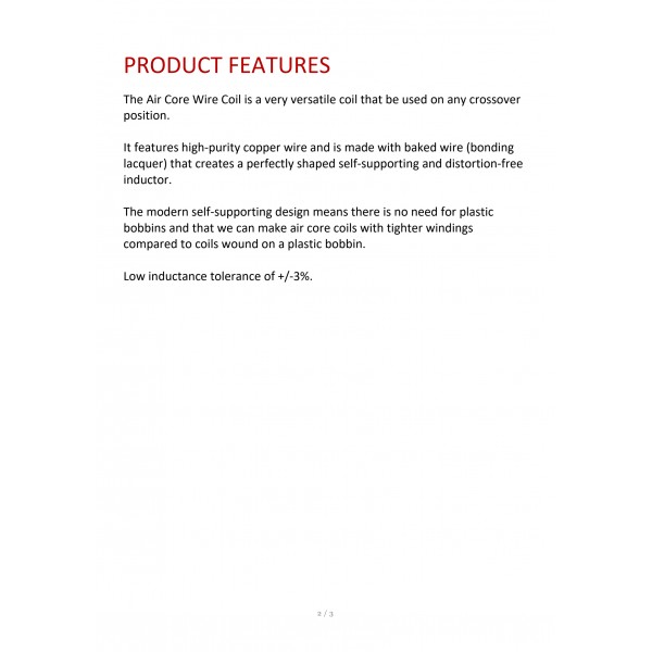 © It features high-purity copper wire and is made with baked wire (bonding lacquer) that creates a perfectly shaped self-supporting and distortion-free inductor.